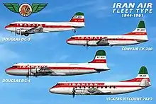 تا سال ۱۳۳۶ ناوگان شرکت هواپیمائی ایران تنوع هواپیماهایی نظیر داگلاس دیسی-۳، داگلاس دیسی-۴، داگلاس دی سی-۶ بی و کانوایر سی وی - ۲۴۰ را شامل بود.