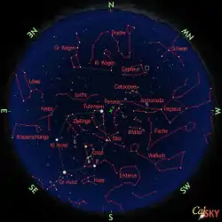 شش ضلعی زمستانی در میان نقشه ستارگان.