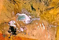 تصویر فضایی ناسا از دریاچه که تقریباً بیشتر آن خشک شده است.