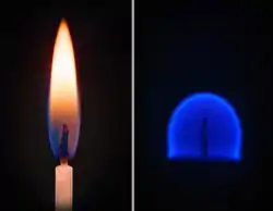 شعله همانند گاز گسترش پیدا میکند و شما معمولاً قادر به دیدن آن نیستید. این گسترش موجب سرد شدن آن میشود و زمانی که به اندازه کافی سرد شد دیگر توانایی تولید نور قابل مشاهده را نخواهد داشت.