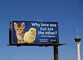 ![]() لوگوی شفقت برای حیوانات بر بیلبورد، لاس وگاس | |