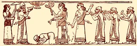 ![]() شاه یهودیه اسرائیل در حال خاکبوسی در پیش شلمنسر سوم پادشاه آشور | |