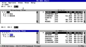 پوسته شامل ویژگیهای مشترک دیگر مدیران فایل مانند کپی، انتقال و تغییر نام فایلها و همچنین توانایی راه اندازی برنامههای با دو بار کلیک است. پوسته را میتوان با دستور " DOSSHELL " اجرا کرد. این توانایی تنظیم رنگ و سبک ساده داشت.