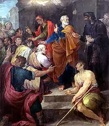 شرح حال شمعون در کتاب اعمال از عهد جدید آمده است. در این داستان ذکر شدهاست که شمعون مجوسی ساحر بسیار قدرتمندی بود و مردم زیادی را دور خود به خاطر قدرت سحرش جذب کرده بود. او مشاهده کرد که پطرس و حواریون عیسی با دست زدن به بیماران آنها را شفا میدهند. وقتی شمعون مشاهده کرد که روح مقدس از طریق حواریون مردم را شفا میدهد به آنها مقداری پول پیشنهاد کرد و از آنها درخواست کرد که به او هم این قدرت را بدهند تا او نیز بتواند مردم را شفا دهد. پطرس از حرف او بسیار عصبانی شد و گفت: «امیدوارم پول تو نیز به همراه تو نابود گردد زیرا تو تصور کردی که میتوانی هدیه خداوند را با پول خریداری کنی. تو در اینکار جایی نداری زیرا قلب تو با خداوند درست نیست. از بدطینتی خود توبه کن و به خدا دعا کن»