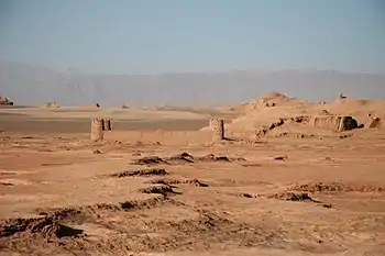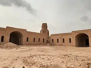 نمایی از کاروانسرا و قلعه در نزدیکی کلوتهای شهداد