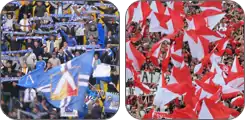 ![]() هواداران زسکا صوفیه (راست) و هواداران لفسکی صوفیه (چپ) | |
