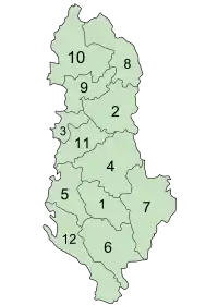 | Kukës | کوکس | ۷۹٬۳۰۳ | ۲٬۳۷۳ | ۳۳ | هاس، کوکس، تروپویه | |