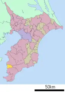 - مشارکتکنندگان ویکیپدیا. «Awa District, Chiba». در دانشنامهٔ ویکیپدیای انگلیسی، بازبینیشده در ۳۰ مارس ۲۰۱۸.