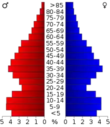 هرم سنی این شهرستان در سال ۲۰۰۰ در شکل روبرو نمایش داده شدهاست.