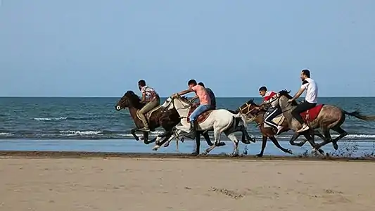 از جمله نقاط دیدنی در این شهرستان، ساحلی به طول ۳۰ کیلومتر است که به دلیل نزدیکی کوه با دریا، در این منطقه جغرافیائی، چشمانداز زیبایی را به خود اختصاص دادهاست. همین عامل، این شهرستان را به مهمترین مرکز والیبال ساحلی در ایران تبدیل کردهاست.