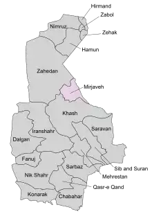 شهرستان میرجاوه شامل ۳ بخش، ۷ دهستان و ۳ شهر به نامهای زیر است: