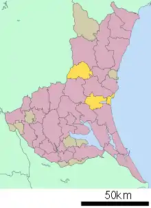 - مشارکتکنندگان ویکیپدیا. «Higashiibaraki District, Ibaraki». در دانشنامهٔ ویکیپدیای انگلیسی، بازبینیشده در ۳ آوریل ۲۰۱۸.