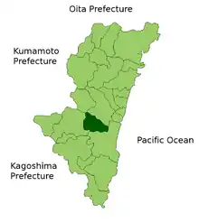 - مشارکتکنندگان ویکیپدیا. «Higashimorokata District, Miyazaki». در دانشنامهٔ ویکیپدیای انگلیسی، بازبینیشده در ۳ آوریل ۲۰۱۸.