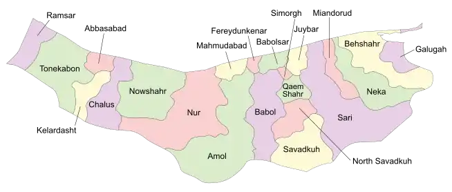| نقشه استان مازندران به تفکیک شهرستان |