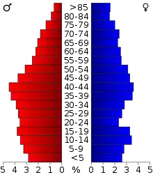 این شهرستان بر اساس سرشماری سال ۲۰۰۰ دارای ۲۰۴۵۲ نفر جمعیت بودهاست. هرم سنی این شهرستان در سال ۲۰۰۰ در شکل روبرو نمایش داده شدهاست.