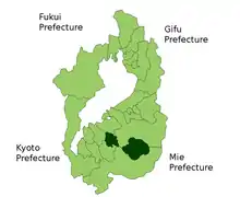 - مشارکتکنندگان ویکیپدیا. «Gamō District, Shiga». در دانشنامهٔ ویکیپدیای انگلیسی، بازبینیشده در ۲ آوریل ۲۰۱۸.