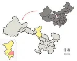 ![]() View of the Gulang County seat from the Lanzhou–Xinjiang railway | |