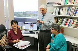 گروه تحریریه «شهروند»: نسرین الماسی (چپ)، حسن زرهی، فرح طاهری، در دفتر نشریه در تورنتو