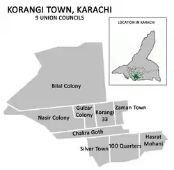 - مشارکتکنندگان ویکیپدیا. «Korangi Town». در دانشنامهٔ ویکیپدیای انگلیسی.