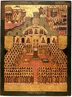 - شورای هیریه، قانون ۱۹، "اگر کسی این هفتمین شورای مقدس و سراسری ما را نمیپذیرد، بگذارید از سوی پدر و پسر و روح القدس و از سوی هفت سینود سراسری لعنت شود!" http://www.fordham.edu/halsall/source/icono-cncl754.asp