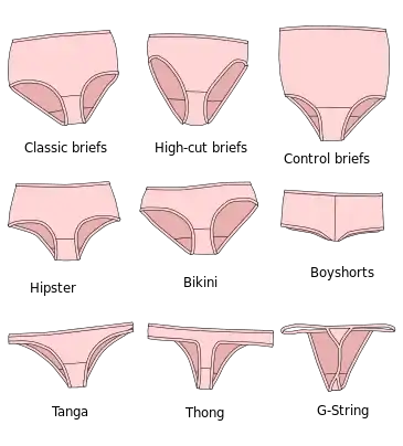 شورت زنانه شامل یک کِش یا بند برای دور کمر و یک پوشش برای اندام جنسی است که معمولاً