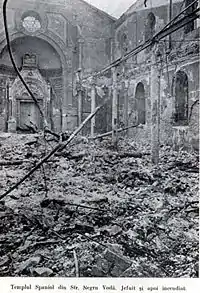 ![]() معبد سفاردیها در بخارست پس از غارت و آتشسوزی | |||||||