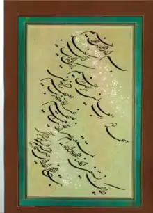 شکستهنستعلیق از جدیدترین خطوط خوشنویسی اسلامی و زیباترین و سومین گونه از خوشنویسی ایرانی است که در اوایل سده یازدهم هجری قمری ابداع شد. چون بیشتر شکلهای آن از شکستن و رها کردن خط نستعلیق گرفته شده بود به نام شکستهٔ نستعلیق شهرت یافت.[1] این خط را میتوان ایرانیترین خط از میان خطوط مختلف خوشنویسی اسلامی دانست.