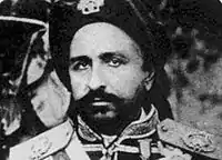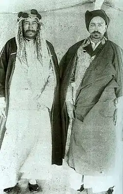 ![]() خزعل کعبی با پوشش و نشانههای قاجاری | |