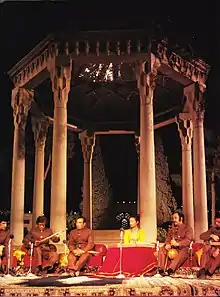 جلال ذوالفنون در حال نواختن سه تار در جشن هنر شیراز در حافظیه