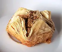 - شیرینی فیلو؛ معمولاً در چند لایه نازک خمیر و به همراه کره میباشد. این شیرینی بسیار ظریف هستند و به راحتی خرد میشود.