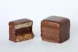 دامینوستین با پوشش شیر و شکلات. (سمت راست) دامینوستین با پوشش شکلات تلخ اصل (سمت چپ) | ||