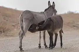 یک کره الاغ، در پارک ملی کویر در حال خورد شیر مادر