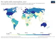- Ritchie, Hannah; Roser, Max (2017-08-25). "Meat and Dairy Production". Our World in Data.