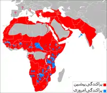 | گستره تاریخی و امروزین زیستگاههای شیر | |