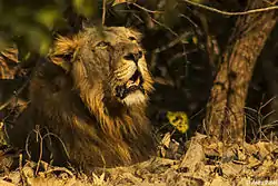 - شیر آسیایی (P. l. persica) که به نامهای شیر ایرانی، جنوب آسیا، و هندی نیز شناخته میشود،[پانویس 2] روزگاری در گسترهٔ وسیعی که از ترکیه آغاز میشد جنوب غرب آسیا را در بر میگرفت و به سرزمینهای شبهقاره هند (پاکستان، هند، و بنگلادش امروزی) کشیده میشد، زندگی میکرد. گلههای گستردهٔ این جانور و عادتشان به فعالیت در روز، شکار آنها را آسان کرد و جمعیتهای محلی آن در بیشتر مناطقی که پیشتر یافت میشدند از میان رفتند. امروزه تنها نزدیک به ۴۰۰ عدد از آنها در جنگل گیر واقع در ایالت گجرات هند زندگی میکنند.[28] بررسیهای ژنتیکی نشان میدهند که اجداد این شیرها میان ۷۴ تا ۲۰۳ هزار سال پیش از اجداد شیرهای آفریقایی امروزین جدا شدند.[22]