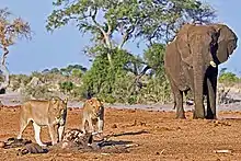 - Trinkel, Martina; Kastberger, Gerald (2005). "Competitive interactions between spotted hyenas and lions in the Etosha National Park, Namibia". African Journal of Ecology. ۴۳ (۳): ۲۲۰–۲۲۴. doi:10.1111/j.1365-2028.2005.00574.x.