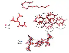 ساختار شیشههای کالکوژناید نمیتواند مانند سیلیسیم آمورف توسط یک شبکه پیوسته تصادفی در سه بعد توضیح داده شود. شیشههای As2S3، As2Se3، GeS2 و GeSe2 میتوانند بهطور موضعی ساختار شبه لایه ای داشته باشند، درحالی که S خالص و Se شبیه زنجیره اند. برای تمامی این مواد، انعطافپذیری قابل توجهی در نتیجه پیوندهای ضعیف واندروالس بین لایهها یا زنجیرهها وجود دارد. طیفسنجی رامان یک ماده، اطلاعات دینامیک و ساختاری را در سطوح مولکولی ارائه میدهد. طیفسنجی رامان فروسرخ نزدیک میتواند برای آنالیز موادی با جذب قوی و بالا در محدوده مرئی مورد استفاده قرار گیرد. سلنیوم در گروه ششم جدول تناوبی قرار دارد. ساختار بیرونیترین لایه الکترونی آن به صورت 4s2p4 است. هیبریداسیون اوربیتالهای الکترونی در سلنیوم کوچک است؛ بنابراین فقط الکترونهای اوربیتال p پیوندهای شیمیایی تشکیل میدهند و منجر به ایجاد مولکولهای به شکل حلقه یا زنجیرههای پلیمری میشوند. دو الکترون دیگر نیز به صورت جفت الکترونهای منفرد به شکل الکترونهای غیر پیوندی باقی میمانند.[2]