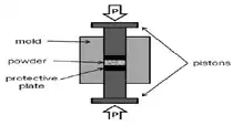 اعمال جریان مستقیم به قالب (از جنس گرافیت، WC، فولاد زنگ نزن) اجازه میدهد تا زمانی که فشار تک محوره وارد میشود، با انرژی الکتریکی گرم شود؛ بنابراین PCES روشی مشابه پرس گرم تک محوره با سرعت گرمایشی سریع تا (C/min 1000˚) میباشد. همچنین مواد خاصی به منظور اعمال فشار ایزواستاتیک یا شبه استاتیک پودرهای فرآوری شده میتوانند به عنوان رسانا یا عایق استفاده شوند. در پودرهای عایق، حرارت عمدتاً از طریق قالب منتقل میشود در حالی که پودرهای رسانا به وسیله انرژی الکتریکی و انتقال گرما از طریق ظرف و الکترودها انجام میگیرد. اگر پودر رسانا باشد میتوان از قالب عایق استفاده کرد. بار مکانیکی وارده به خواص ذاتی قالب بستگی دارد. در قالبهای گرافیتی، فشار معمولاً به 120Mpa محدود میشود ولی در قالبهای از جنس WC میتواند تا 800Mpa افزایش یابد، در حالی که قالب گرافیتی بسته به فشار اعمالی تا دمای ۲۰۰۰ و برای قالب WC تا ۹۰۰ میتواند گرم شود.