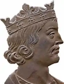 چهره شیلدبرت سوم بر یک نشان برنزی