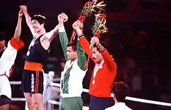 ![]() Shin Joon-Sup on the 1984 Olympic podium | ||
