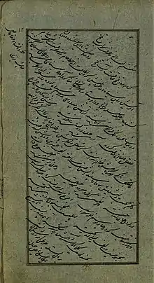 | نمیدانم چه میریزد ز کلک نامه پردازم | که هر سطری به خود از درد چون طومار میپیچد | |