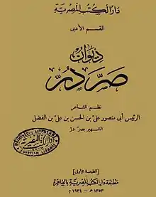 ![]() جلد دیوان چاپشدهٔ صردر | |