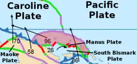 صفحه بیسمارک شمالی به سمت شمال با صفحه اقیانوس آرام و صفحه کارولین برخورد دارد و بخشی از قسمت غربی آن به زیر صفحه وودلارک در گینه نو فرورانده میشود. این صفحه توسط یک مرز واگرا به نام خطواره لرزهای دریای بیسمارک[1] از صفحه بیسمارک جنوبی جدا میشود. صفحه بیسمارک شمالی در امتداد صفحه اقیانوس آرام در حال حرکت به سمت شرق است و منطقه لرزهای بسیار فعالی بهشمار میرود. درازگودال مانوس میان صفحه بیسمارک شمالی و صفحه کارولین قرار گرفته و درازگودال کلینالایی مرز میان این صفحه و صفحه اقیانوس آرام محسوب میشود.