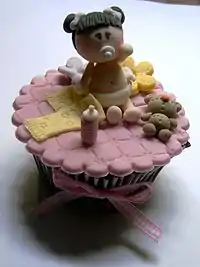 طرح زیرانداز زیر کودک در کاپ کیک، با استفاده از صفحهٔ طرحانداز کیک بوجود آمدهاست.