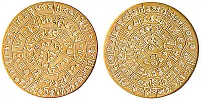 | کشفشده | ۳ ژوئیه ۱۹۰۸ در Phaistos، کرت، توسط Luigi Pernier |