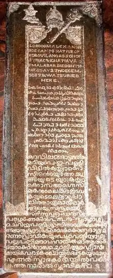 کلیسای نصرانی سن توماس در ایالت کرالا مربوط به مهاجران نصرانیهای ایرانی است برابر نوشته کتاب نقش پارسی بر احجار هند در میان کتیبههای بازماندهٔ پهلوی، کتیبهای که پیرامون شش صلیب سنگی نوشته شده، از اهمیتی ویژه برخوردار است. خط به کار رفته در این کتیبه، حد فاصل خط پهلوی کتیبهای و خط پهلوی کتابی است. همهٔ این شش صلیب سنگی در جنوب هند یافت شده و احتمالاً به سدهٔ هفتم میلادی تعلق دارند. این صلیبهای سنگی را مسیحیان ایرانی سریانی که به جنوب هند مهاجرت کرده بودند، از خود به یادگار نهادهاند. تاکنون تلاشهای بسیاری برای قرائت و ترجمهٔ این کتیبهٔ پهلوی صورت گرفته، اما هیچیک رضایتبخش نبودهاست. پژوهشهای جدید نشان میدهد زبان کتیبه نه فارسی میانه، بلکه فارسی دری است که اواخر دوره ساسانی را در برمی گیرد. مسیحیانی که از ایران یا خراسان بزرگ به این منطقه مهاجرت کردهاند و احتمالاً مسیحیت توسط این گروه از ایرانیان در هند معرفی شدهاست.
