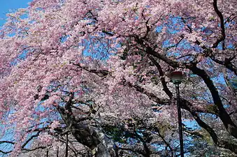 شکوفههای گیلاس در میاگی، ژاپن. زبان ژاپنی برای صورتیهای شکوفههای گیلاس (ساکورا-ایرو) و شکوفههای هلو (مامو-ایرونی) کلمات مختلفی دارد. اخیراً کلمه pinku نیز رایج شدهاست.