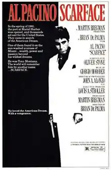 | بازیگران | آل پاچینو (تونی مونتانا) میشل فایفر استیون باوئر ماری الیزابت ماسترانتینایو رابرت لوگیا فهرید موری آبراهام مارک مارگولیس ریچارد بلزر هریس یولین |