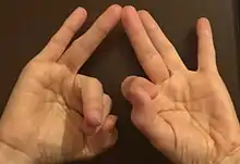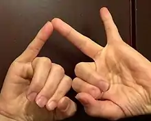 مثال: فرض کنید بخواهیم حاصل ضرب ۱۴×۱۳ را به دست آوریم. دو دست خود را طوری نگه میداریم که پشت آنها به روی خودمان باشد. در هر دست از انگشت شصت تا انگشت کوچک را به ترتیب از ۱۱ تا ۱۵ شماره گذاری میکنیم. دو انگشتی که عدد ۱۳ و عدد ۱۴ را در هر دو دست نشان میدهند، روی هم قرار میدهیم؛ و انگشتان بعد از این دو عدد را میخوابانیم. حاصل ضرب ۱۴×۱۳ برابر است با مجموع حاصل ضرب تعداد انگشتانی که باز هستند در ۱۰ به اضافه مجموع انگشتان باز، به اضافه 100:[4]