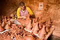 سفال سنتی تاجین ، که گاه رنگ آمیزی یا لعاب دار است ، از دو قسمت تشکیل شده است: واحد پایه دایره ای که مسطح با ضلع های پایین و یک پوشش بزرگ مخروطی یا گنبدی شکل است که هنگام پخت و پز روی پایه قرار می گیرد. این پوشش به گونه ای طراحی شده است که تمام تراکم را به پایین برگرداند. با اضافه کردن آب سرد به درون سوراخ مخصوصی که در قسمت بالای درب قرار دارد ، می توان این روند را بهبود بخشید.